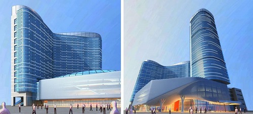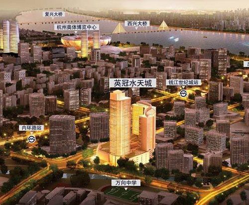 英冠水天城地处钱江世纪城E-11地块,东临广场路,西南临公园东路,北临盈丰中心小学,区域位置比邻奥体中心。根据任务书要求,建成后的英冠水天城将集五星级酒店、甲级写字楼、精品商业于一体,在如此众多的外部条件下,城市建筑综合体的概念便应运而生。