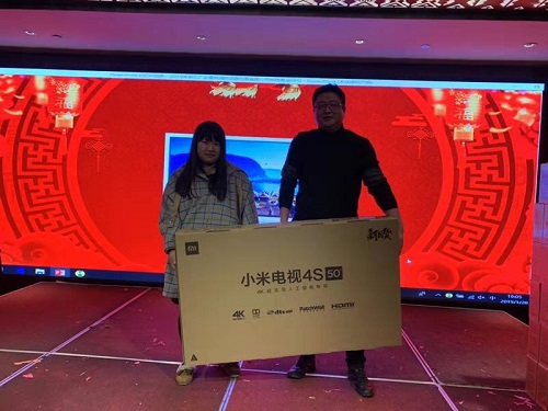 下午茶话会中,游戏环节是备受大家期待的增进团队协作互助的环节,游戏有抢水瓶、靠肢体动作猜成语、听音乐伴奏猜歌名、歌词接龙、蒙眼吹气球,每个参与游戏的员工都拿到了大大小小的奖励品。晚上,为了让参加年会的员工都能满载而归,公司准备了许多大奖,一等奖两名,每名奖华为最新款mate20pro一台,二等奖四名,每名奖小米55寸互联网大彩电一台,三等奖六名,每名奖日本松下智能温控变频电饭煲一台。没抽到大奖的,每个人还可以领到一份价值200元的东北石板大米,一份份大奖惊喜而又温馨的送出。最为热闹的是在董事长朱政与现场员工现场建立的红包群里的抢红包活动,一个个大红包,让现场员工激动不已,拼命的抢。现场掌声阵阵,笑声连连。 年会上,董事长朱政做了精彩而真情的演讲:对公司2018年的发展作了全面客观、公正的总结,并提出了公司2019年的发展思路。年会还对公司各部门优秀员工和公司表现突出的员工进行了表彰与嘉奖。整个年会在欢歌笑语中取得圆满成功。