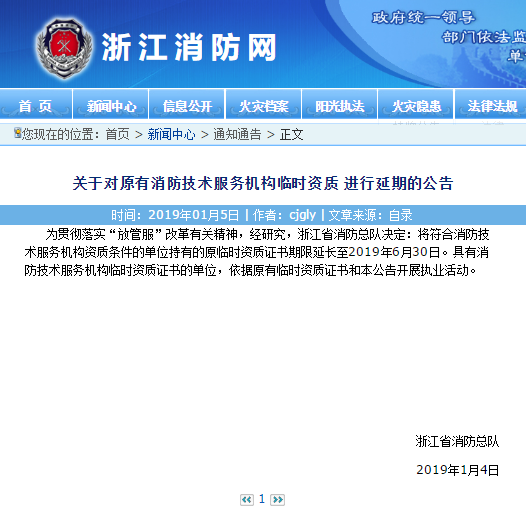 关于对原有消防技术服务机构临时资质进行延期的公告